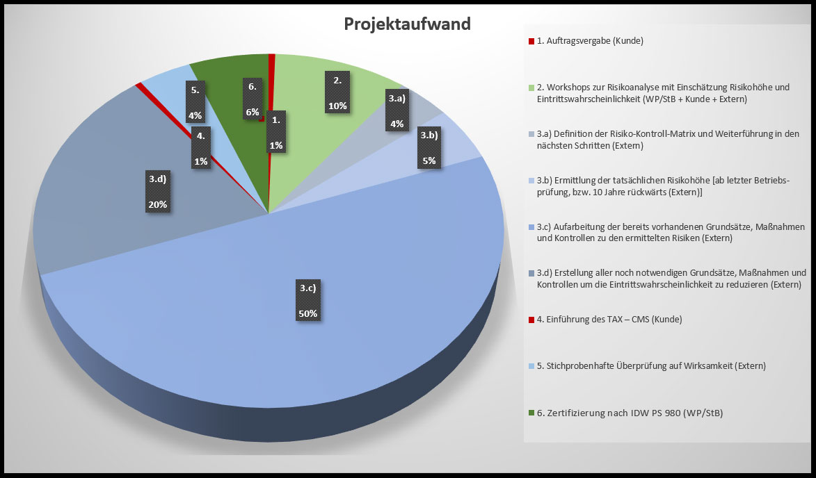 Ziel eines TAX-CMS-Projekts ist es, die Eintrittswahrscheinlichkeit der Risiken zu minimieren. Dafür werden in Abhängigkeit zur Risikohöhe notwendige Minimierungsaktivitäten konzipiert (3.d).