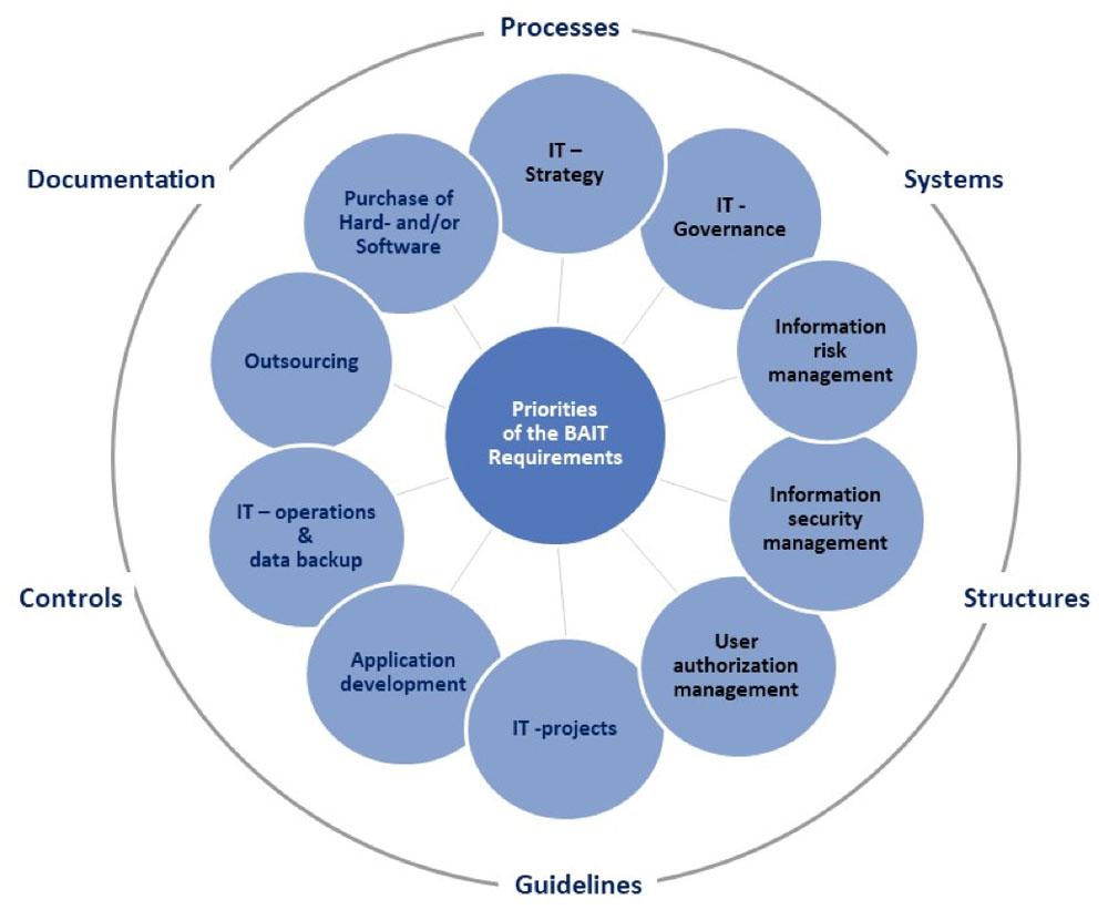 On 6 November 2017, BaFin published the "Bank Supervisory Requirements for IT Risk Management" (BAIT). With these, BaFin explains what it means by appropriate technical and organizational equipment of the IT systems, with particular regard to the requirements of information security and an appropriate emergency concept. In essence, the BAIT is a concretization of the requirements of MaRisk to IT.